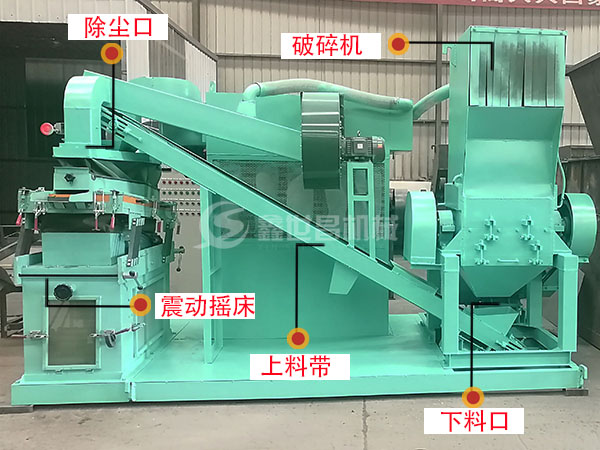 整個(gè)粉銅米機(jī)器是一臺(tái)破碎、分選一體的機(jī)器,它由破碎機(jī)、分選機(jī)、雙層循環(huán)槽、配電箱等部分組成。